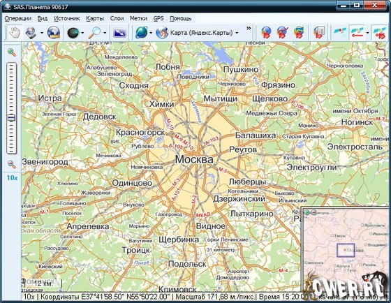 SAS.Планета – бесплатное приложение для просмотра и загрузки спутниковых снимков высокого разрешения и обычных карт, представляемых такими сервисами, как Google Earth, Google Maps, Bing Maps, DigitalGlobe, “Космоснимки“, Яндекс.карты, Yahoo! Maps, VirtualEarth, Gurtam, OpenStreetMap, eAtlas, iPhone maps, карты Генштаба и др. Однако, все эти сервисы работают онлайн, а скачав SAS.Планета на cwer.ws, вы сможете сохранить все необходимые карты на вашем компьютере и просматривать их даже без подключения к интернету. Кроме обычных спутниковых карт возможна работа с политической, ландшафтной, совмещенной картами, а также картами Луны и Марса.