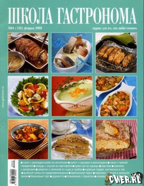 "Школа гастронома" - журнал для тех, кто любит готовить. В каждом номере журнала - кулинарные рецепты с подробнейшим поэтапным описанием приготовления блюда. Каждый шаг на пути к кулинарному шедевру, будь то яичница-глазунья или замысловатый французский соус, иллюстрирован цветными фотографиями. Все рецепты подобраны так, чтобы входящие в них продукты могла позволить себе средняя российская семья