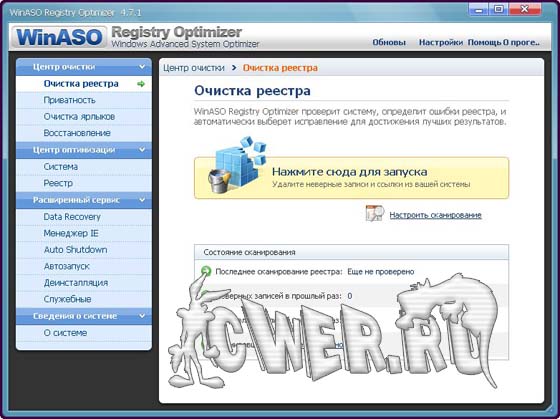 WinASO Registry Optimizer - программа которая поможет вам в чистке и восстановлении системного реестра Windows. В процессе работы программа сканирует реестр и удаляет некорректные или устаревшие записи, тем самым, ускоряя работу Windows и избавляя её от разного рода ошибок. Среди дополнительных возможностей можно отметить: проверку реестра по расписанию, дефрагментацию реестра, создание списка ошибок, которые программа должна игнорировать, менеджер автозагрузки, деинсталляция приложений, а также очистка диска от временных файлов и файлов интернета. Имеется опция отмены произведенных изменений.