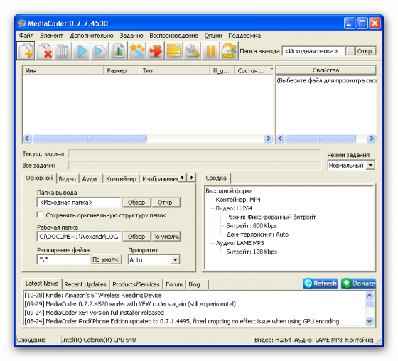 MediaCoder - позволяет повысить компрессию видео и аудио с целью уменьшения размеров файла, может извлекать аудиотреки, предоставляет возможности для конвертирования видео в нормальные VCD/DVD, может осуществлять конвертирование аудио без заметной потери качества, способен создавать копии CD "на лету" и многое другое.