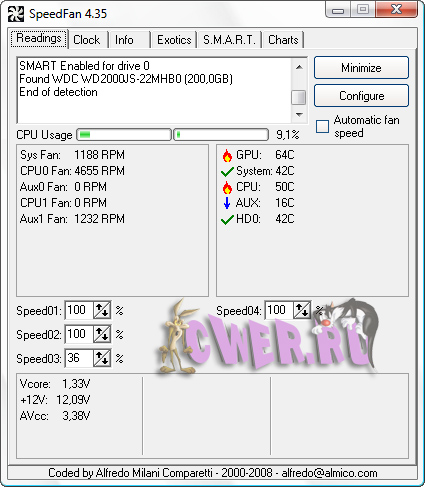 SpeedFan - системная утилита для контроля за параметрами материнской платы.
