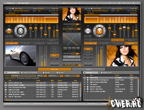 ClubDJ - профессиональный DJ пульт для микширования аудио (MP3, WMA, OGG, MP34, AAC, M4A, WAV и т.д.), видео (AVI, Mpeg1, Mpeg2, DivX, XVid и т.д.) и караоке файлов (MP3 G, WMA G, OGG G, WAV G, MP4 G, AAC G, M4A G и т.д.), состоит из двух виртуальных аудио дэк для свидения аудио, DAC-2 видео микшер с изменением темпа в реальном режиме времени, изменение BPM, визуализация, подключение семплов, семпл машина, друм машина, предварительное прослушивание, сортировка, наложение эффектов и фильтров, простой и удобный интерфейс. Имеется видео микшер с изменением темпа в реальном режиме времени.