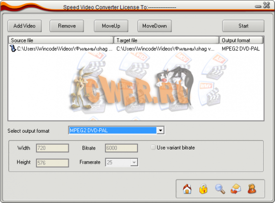 Speed Video Converter предназначена для конвертирования видео файлов. Поддерживает: AVI (Divx, xDiv), MPEG-4, mpeg (vcd, svcd, dvd compatible), wmv, asf, Quick Time, VOB, DAT форматы, присутствуют возможности пакетного конвертирования, обладает высоким качеством и скорость работы, позволяет выбрать и настроить кодеки, имеет простой и удобный интерфейс.