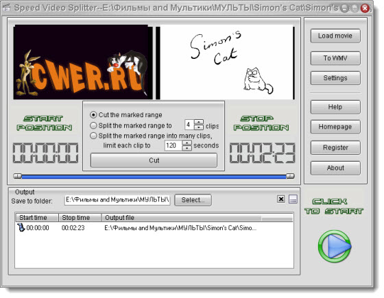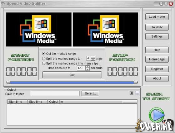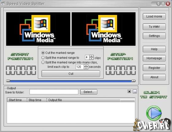 Speed Video Splitter - Нарезка на фрагменты больших видео файлов. Поддержка AVI (Divx, xDiv), MPEG-4, mpeg (vcd, svcd, dvd compatible), wmv, asf, Quick Time, VOB, DAT видео форматов, сохранение фрагментов в любом поддерживаемом формате, простой и удобный интерфейс, высокая скорость и высокое качество нарезки.
