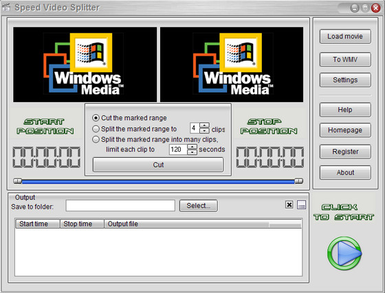 Speed Video Splitter - нарезка на фрагменты больших видео файлов. Поддержка AVI (Divx, xDiv), MPEG-4, mpeg (vcd, svcd, dvd compatible), wmv, asf, Quick Time, VOB, DAT видео форматов, сохранение фрагментов в любом поддерживаемом формате, простой и удобный интерфейс, высокая скорость и высокое качество нарезки.