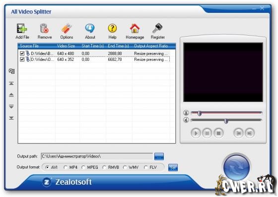 Мощная сервисная программа для разделения, обрезания (подрезки) больших AVI, DivX, Xvid, MPEG, WMV, ASF, RM, MOV, 3GP или MP4 файлов на маленькие клипы в различных форматах. Встроенный видео проигрыватель и различные режимы разделения позволят вам с легкостью разделить или обрезать видео файл на маленькие клипы.Вы можете даже использовать данную программу для конвертирования отдельного файла. К выходным форматам относятся AVI, MPEG I/II, VCD, SVCD, DVD, WMV. Все кодировщики/кодеки уже встроены и любое преобразование может быть сделано после запуска программы. Данная программа не требует каких-либо дополнительных технических навыков и очень проста в использовании.