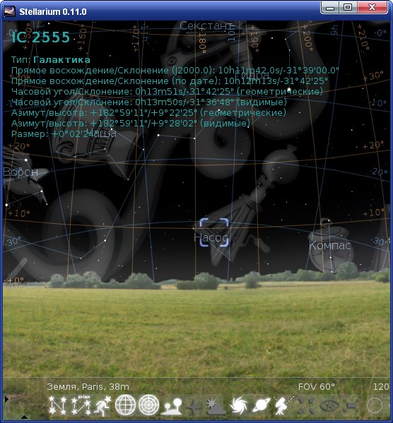 Stellarium — это свободный планетарий для Вашего компьютера с открытым исходным кодом. Он отображает небо таким, каким Вы видите его невооружённым глазом, в бинокль или телескоп. Просто введите свои координаты и исследуйте небо!