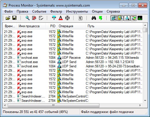 По сути, Process Monitor обьединяет в себе возможности популярных утилит этого же автора: Filemon (мониторинг файловой системы), Regmon (мониторинг реестра) и Process Explorer (мониторинг процессов)...