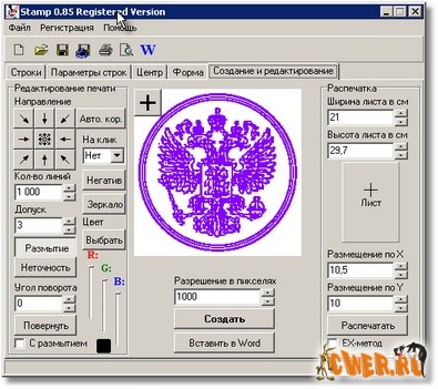 Stamp - видимо единственная в своём роде программа, позволяющая создавать печати любой сложности.