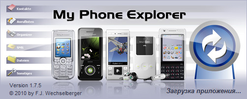 MyPhoneExplorer - программа для управления мобильными телефонами. В программе имеется файловый менеджер, редакторы СМС, телефонной книги, профилей, модуль для сохранения резервных копий всего, что есть в телефоне. Возможна синхронизация данных с MS Outlook и Outlook Express, Кроме этого, MyPhoneExplorer в режиме реального времени выдает подробную информацию о телефоне, состоянии памяти, степени сигнала, уровне заряда батареи и т.п. Поддерживается соединение с телефоном через кабель, bluetooth или ИК-порт. Интерфейс MyPhoneExplorer - многоязычный.