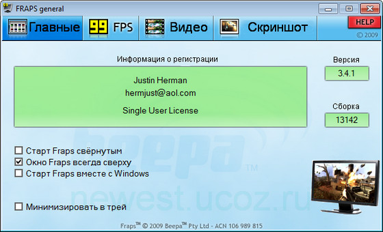 Fraps - предназначена для подсчета количества FPS (кадров в секунду) в приложениях, работающих в режимах OpenGL и Direct3D. Утилита умеет делать скриншоты и записывать видеоролики с изображением с экрана.