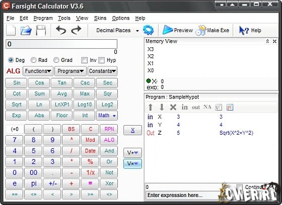 Farsight Calculator - удобный в работе программируемый калькулятор, позволяющий сохранять процесс вычисления как программу или функцию и выполнять арифметические операции любым алгебраическим методом. Программа поддерживает больше ста функций, включая алгебраические, тригонометрические, гиперболические, статистические, и финансовые функции. Кроме того Farsight Calculator содержит ряд мощных специализированных инструментов. Прост в использовании, имеет удобный интерфейс, работает на всех платформах операционных систем Windows.