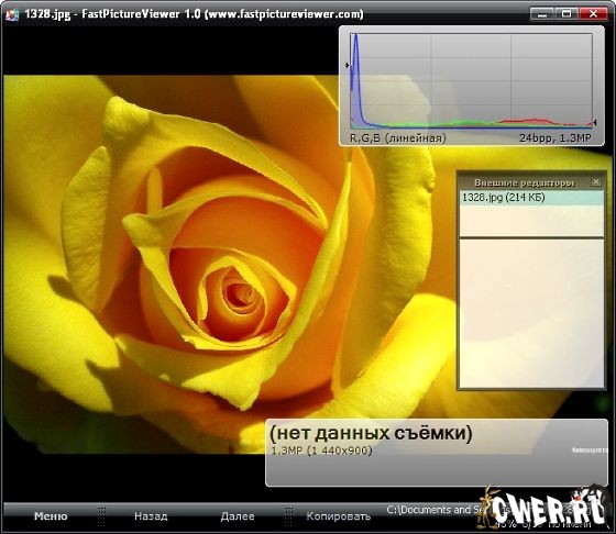 Оно очень простое, и для обычного пользователя цель его может быть не сразу очевидна. Программа оптимизирована делать только одно: просмотреть все папки с цифровыми фотографиями настолько быстро, насколько это возможно. Программа не только быстро откроет большое изображение, отрисовывая его практически мгновенно, но и предоставит подробную информацию о нем.