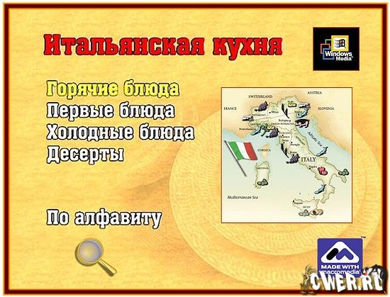 Интерактивная книга рецептов познакомит вас с изысканной и неповторимой итальянской кухней. Удобная навигация, обстоятельное звуковое сопровождение каждого рецепта, красивые иллюстрации помогут вам в выборе и приготовлении приглянувшегося блюда.