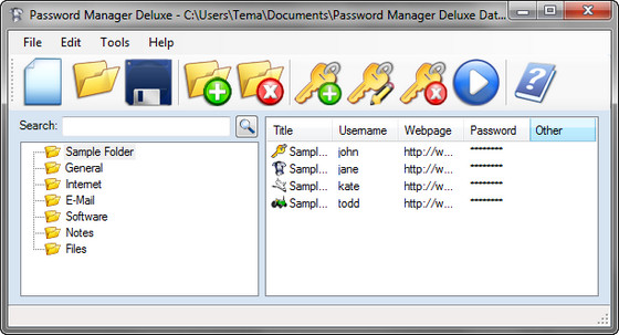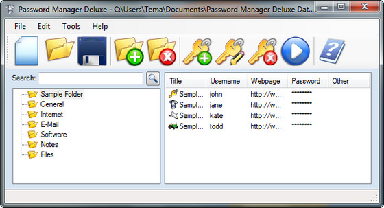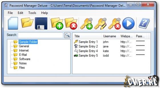 Password Manager Deluxe - программа является менеджером паролей. Позволяет хранить логины и пароли, шифровать файлы, создавать резервные копии баз данных, экспортировать данные в HTML, XML, CSV и текстовые файлы. Созданную базу можно использовать на других ПК. Помимо этого программа включает в себя генератор паролей. Не беспокойтесь о том, что вы снова забыли пароль! Password Manager Deluxe сможет для вас: запомнить все имена пользователя и пароли, с легкостью найти нужный логин, автоматически заходить на веб-страницы, используя технологию Drag-and-Drop, защищать ваши пароли и файлы. Ваши данные будут защищены 256 - битным алгоритмом AES/Rijndael шифрования.