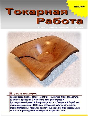 «Токарная Работа» – свободно распространяемый электронный журнал о токарной обработке дерева, выходит четыре раза в год. На его страницах представлены материалы о технике и технологии точения, станках, инструментах и оборудовании, выборе и заготовке материалов, способах отделки и декорирования токарных изделий из дерева, эстетике токарных форм, философии творчества и других аспектах токарного ремесла.