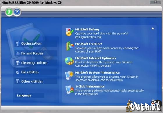 MindSoft Utilities XP - пакет программ, состоящий 19 утилит, позволяющий настроить работу операционной системы Windows XP. Программы, находящиеся в данном пакете помогут пользователю очистить место на жестком диске, дефрагментировать оперативную память и жесткие диски, повысить стабильность работы компьютера, повысить скорость работы соединения с интернетом, ускорить запуск приложений и многое, а также вы узнаете всё, относительно аппаратного и программного обеспечения компьютера. Также имеется множество других полезных возможностей. Программа может быть использована как специалистами, так и обычными пользователями ПК. Имеет приятный на вид и интуитивно-понятный на восприятие пользовательский интерфейс.
