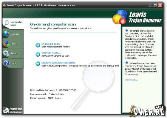 Loaris Trojan Remover поможет полностью очистить Ваш компьютер от всех агрессивных угроз! Ваш компьютер будет чист и будет работать значительно быстрее - Ваша Конфиденциальность будет Защищена! Приложение Loaris Trojan Remover проектировалось как средство удаления вредоносных программ: трояны, черви, рекламные и шпионские программы - когда стандартное программное антивирусное обеспечение или не в состоянии обнаружить их, или не в состоянии фактически удалить их. Стандартная антивирусная программа хороша в обнаружении вредоносных программ, но не всегда справляется с их удалением. Trojan Remover проектируется особо для удаления этих программ без необходимости ручного их удаления. Программа также удаляет дополнительные системные обновления, которые были привнесены вредоносным программным обеспечением. Trojan Remover просматривает Все файлы, загруженные во время старта системы, на наличие Adware, Spyware, Троянцев, Интернет Червей и др. Доступны два типа. Стандартное сканирование быстро просматривает систему без потребности в дальнейшей конфигурации параметров сканирования. Пользовательское сканирование позволит выбрать любую из папок для сканирования.