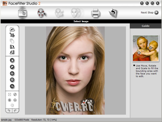 FaceFilter Studio - простой и быстрый редактор цифровых фотографий, специализирующийся на обработке портретов. Программа позволяет менять черты и мимику лица и является своего рода инструментом для виртуального макияжа и виртуальной косметической хирургии. Можно сделать из мрачного субъекта необыкновенно развесёлого человека, создать совершенно безупречное модельное лицо или просто подшутить над знакомыми, придав им облик Квазимодо, например. FaceFilter содержит огромную базу данных портретов, по которым выводит формулу привлекательного лица. Программа сделает так, что на фотографии человек выглядит моложе, умнее, добрее и т.д. Также позволяет пользователям корректировать изображения, в частности, неправильное освещение, эффект красных глаз, неверное соотношение цветов на фото или неудачно пойманное выражение лица.