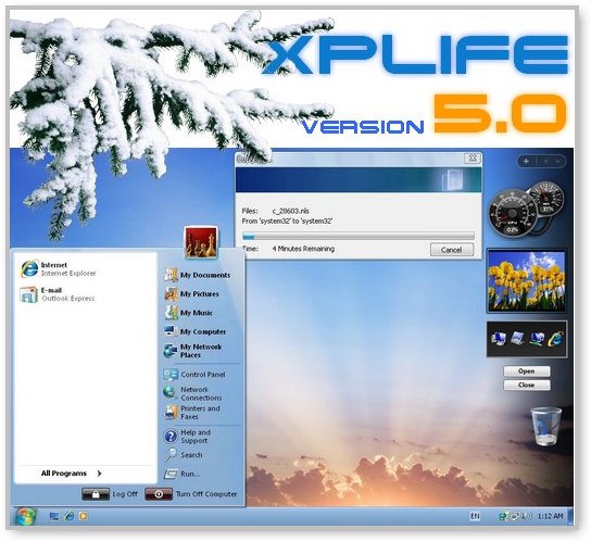 XPLife - программа предназначена для изменения интерфейса Windows XP x86 (32-bit), делая его похожим на Vista и Seven. Отличительной чертой XPLife является стабильная работа и поддержка двух собственных точек восстановления системы. При трансформации системы, изменяется огромное количество иконок, картинок, добавляются новые функции, звуки, курсоры, обновляются до 500 системных файлов, всего около 4000 ресурсов. Интерфейс Windows выдержан в нескольких тонах, четырнадцать стилей оформления и четырнадцать тем, выбор удовлетворит даже самых требовательных пользователей. Программа изменяет только визуальную часть файлов Windows не затрагивая программный код, поэтому безопасна в использовании и не потребляет дополнительные ресурсы, используются только системные. Программа имеет русский интерфейс.
