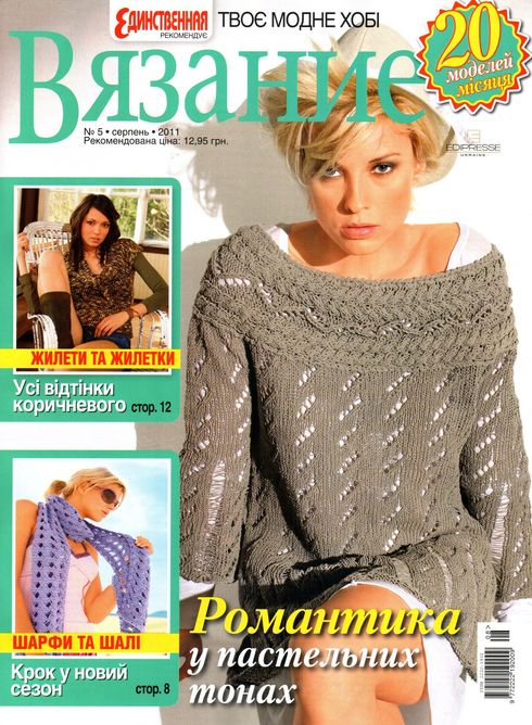 Украинский журнал по вязанию с подробными схемами и описанием 20 моделей от лучших европейских дизайнеров. Кофточки, джемпера, пуловеры, платья, болеро, корсет, пальто, сумка – все интересное и оригинальное, актуальных цветов и из модной пряжи.