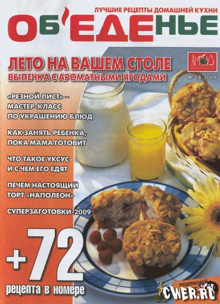 "Объеденье" - журнал, состоящий только из лучших и проверенных рецептов читателей. Огромное разнообразие: салаты, супы, вторые и праздничные блюда, быстрые и детские рецепты, полезные советы, конкурсы и призы!