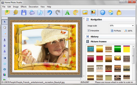 Home Photo Studio - это удобный и мощный редактор фотографий, открывающий неограниченные возможности для творчества. Он позволяет быстро улучшать и редактировать фото, просматривать слайд-шоу, добавлять сотни спецэффектов, создавать коллажи, открытки и календари. Программа отлично подойдёт как для начинающих, так и для опытных пользователей. Home Photo Studio проста в освоении и снабжена подробной справочной системой. Теперь всё необходимое для работы с цифровыми фотографиями есть в одной программе!