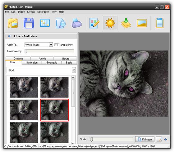 Photo Effects Studio - это новая программа для обработки фотографий при помощи разнообразных фильтров. С её помощью можно полностью преобразить любое изображение. Программа позволяет использовать более 50-ти эффектов, включая как традиционные, так и оригинальные. Вы сможете увидеть свои фотографии на фоне дождя и снега, в тумане и под облаками, добавить солнечный свет или закружить в потоке тайфуна.