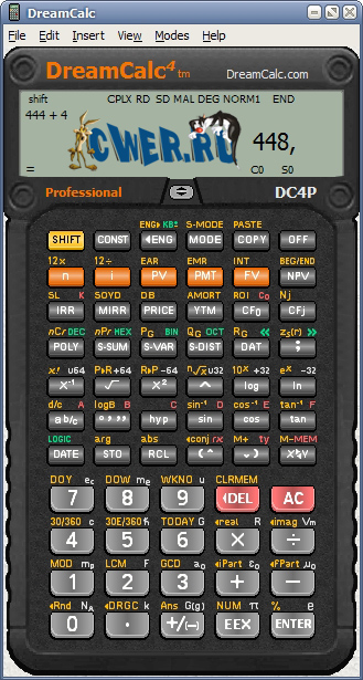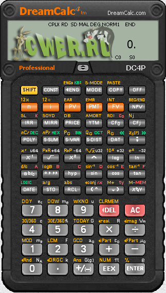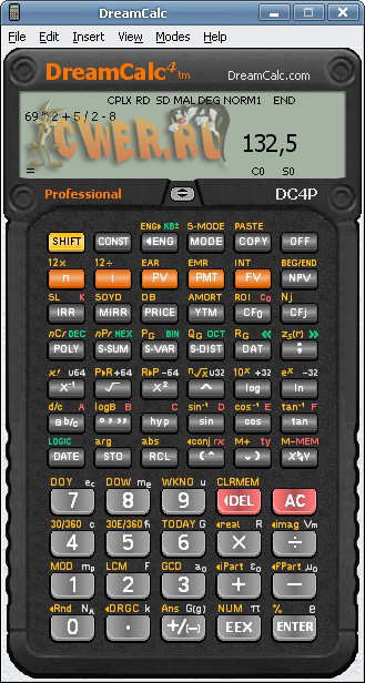 DreamCalc - научный калькулятор для компьютера с интерфейсом, максимально имитирующим внешний вид калькуляторов "из жизни". Программа позволяет использовать различные системы исчисления, проводить тригонометрические расчёты и т.д. и т.п. Поддерживает скины и сохранение проведённых операций в текстовом файле.