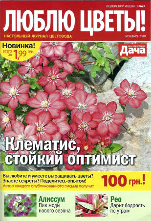 «Люблю цветы!» – это журнал о садовых и домашних цветах, декоративных растениях. Все статьи журнала написаны самими читателями – цветоводами-любителями. Поэтому каждый номер содержит бесценный опыт выращивания, ухода за цветами, борьбы с вредителями. Тема этого номера: Клематис.