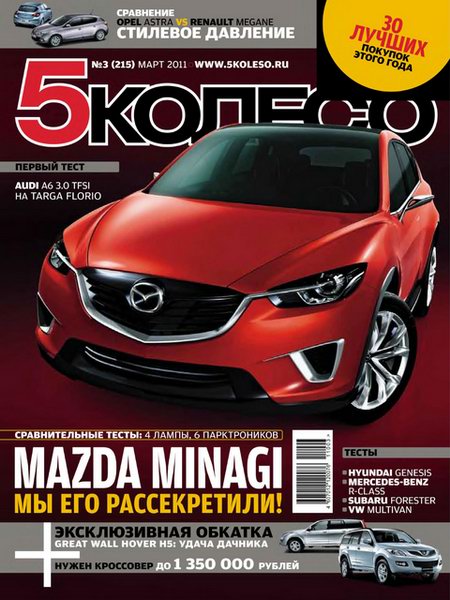 5 Колесо - один из самых популярных автомобильных журналов в России, имеющий многолетнюю успешную историю развития. Это единственное на рынке интерактивное автомобильное издание, которое создается вместе с читателями. Концепция издания - "Создаем журнал вместе!" - позволяет знакомить аудиторию не только с мнениями профессионалов, но и c опытом тысяч компетентных автолюбителей. Издание рассчитано на широкий круг автолюбителей, автомобилистов-профессионалов, представителей автомобильного бизнеса. Одной из главных особенностей журнала являются непосредственное участие читателей в испытаниях автомобилей, представленных на российском рынке, а также самый полный каталог автомобилей, официально продаваемых на российском рынке.