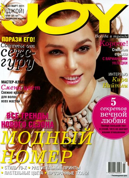 JOY — развлекательный глянцевый женский журнал о трендах. JOY — журнал маленького формата, создающий отличное настроение! Читательницы JOY — жизнерадостные модницы в возрасте от 20 до 30 лет. Они относятся к жизни легко и весело, путешествуют, знают последние направления в моде и красоте, они сексуальны и энергичны. Основные темы журнала: звезды, красота, мода, мужчины, секс и флирт.