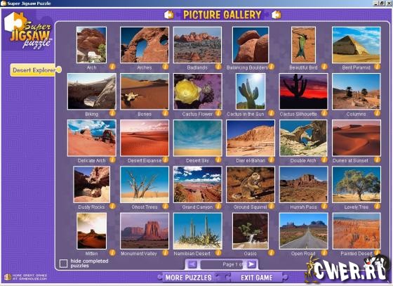 Соберите ошеломляющие изображения, показывающие очаровательные перспективы пейзажей пустыни со всего мира в этой удивительной коллекции мозаик. Изображения разбиты на 500 частей, форму которых вы можете выбрать сами, и этих изображений 50 штук.