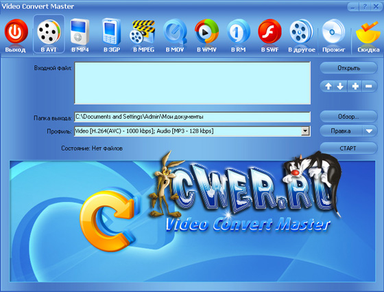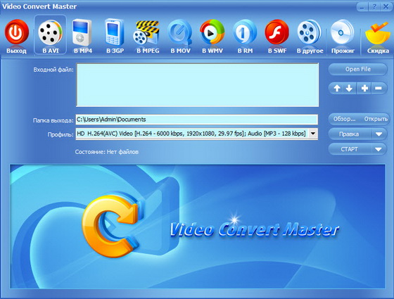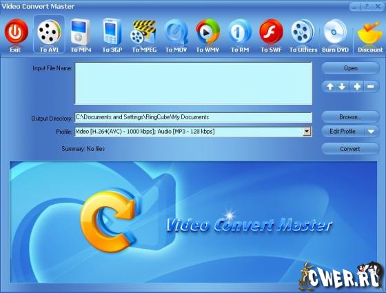 Video Convert Master - универсальный конвертор видеофайлов. Прост в работе - при этом сочетает в себе быстроту и качество обработки. Конвертирует AVI, DVD, VCD, SVCD, MPEG, MPEG 1, MPEG 2, MPEG 4, RM, RMVB, WMV и др. форматы. Записывает видео в DVD/VCD/SVCD. Записывает изображение с DV, WEB Camera, VCR, TV Tuner, и Analog Camera.