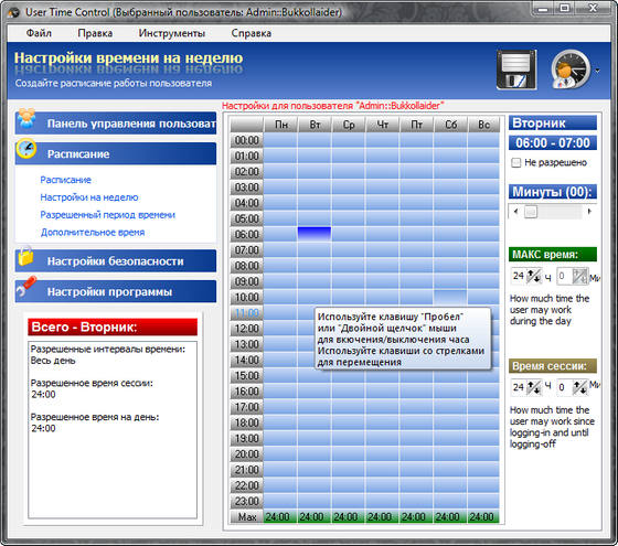 User Time Control Center – это программа, которая способна выставлять лимиты времени, запретить доступ к нежелательным сайтам, скрыть системные или личные файлы. Данное ПО позволит вам точно задать сколько и как долго ваш компьютер можно использовать. Например, родители найдут применение этой утилите, когда нужно ограничить нахождение ребенка в сети.