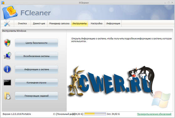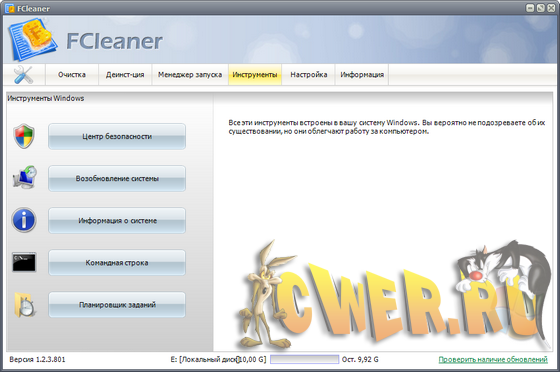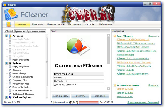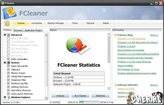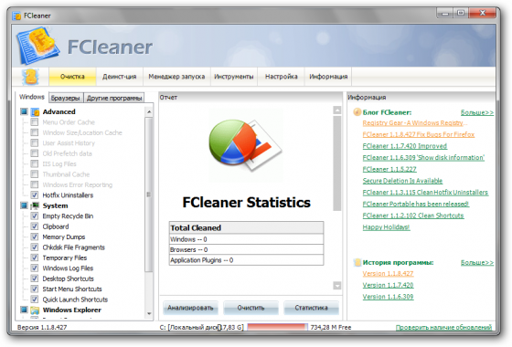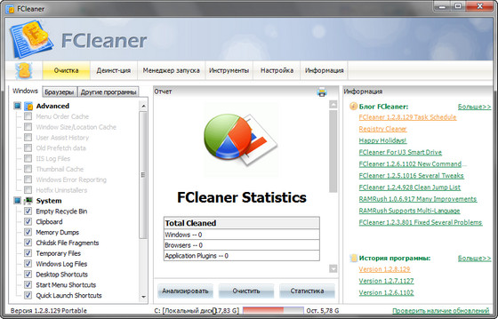 FCleaner - комплексный пакет для очистки и оптимизации системы.
