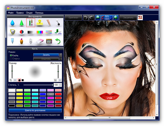 Photoinstrument- великолепный редактор для обработки цифровых фотографий, предназначенный в первую очередь для обработки портретных изображений. Photoinstrument предлагает громадное количество интуитивно понятных инструментов (удаление красных глаз, сглаживание морщин, увеличение чёткости, коррекция цвета и другое) для придания портрету "гламурного" качества.