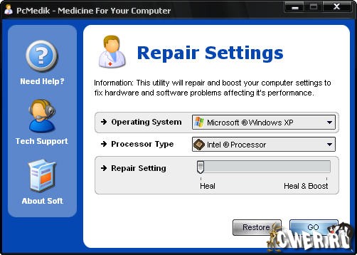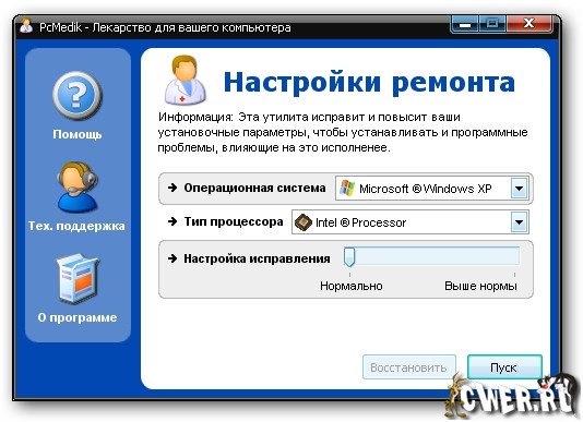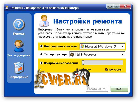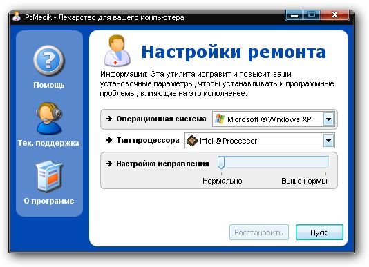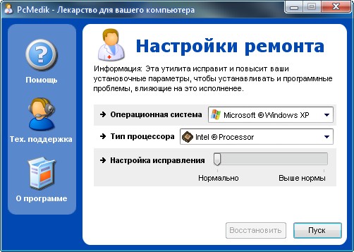 PCMedik - это небольшая программа, предназначенная для настройки параметров и оптимизации работы операционных систем Windows, позволяет уменьшить количество зависаний, "падений" и т.д. Вся работа с программой осуществляется посредством простого интерфейса. Требуется лишь указать операционную систему (Windows XP, например), производителя процессора (Intel, AMD, другой) и выбрать, что необходимо сделать: "вылечить" или "вылечить и оптимизировать". После применения PCMedik может заметно возрасти скорость работы приложений в среде Windows.