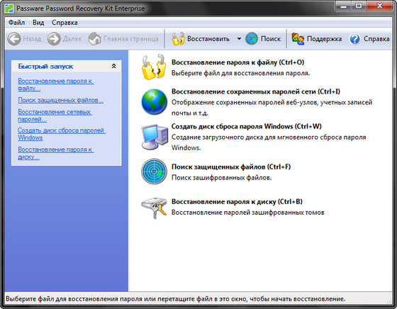 Passware Kit - набор утилит для подбора паролей к файлам, созданным с помощью Excel, Word, Access, Outlook, Outlook Express, Exchange, WinZip, Acrobat, WordPerfect, PGP, а также многих других программ. Приложение, которое можно бесплатно скачать на cwer.ws, способно также производить подбор ключей Windows 8/7/Vista/XP/2000/NT и Windows Server 2008/2003/2000/NT, в том числе для доступа к жестким дискам, зашифрованным с помощью технологии BitLocker. Поддерживаются все методы подбора пароля.