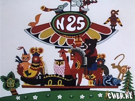 25-ая серия альманаха "Весёлая карусель". В выпуск вошли мультфильмы: "Задом наперед", "Гололедица", "Ответ".