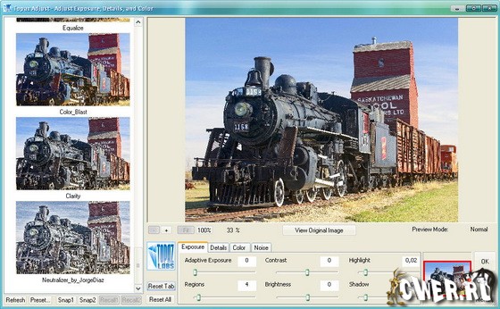 Topaz Adjust - подключаемый плагин для Adobe Photoshop. Topaz Adjust регулирует программное расширение и производит манипуляции с изображениями для Photoshop. Легко и эффективно возьмёт полный контроль над обрабатываим изображением, цветом, и деталями для того, чтобы создать ошеломляющие творческие эффекты и автоматизированной коррекции экспозиции. Topaz Adjust, используeт продвинутые алгоритмы, чтобы достигнуть уникальных эффектов в секунды.