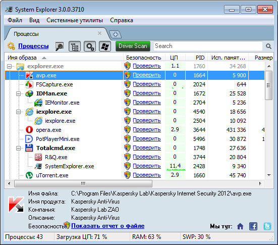 System Explorer - новая версия утилиты, главной целью которой является замена стандартного диспетчера задач Windows. Помимо простого просмотра списка запущенных процессов, вы сможете ими управлять.
