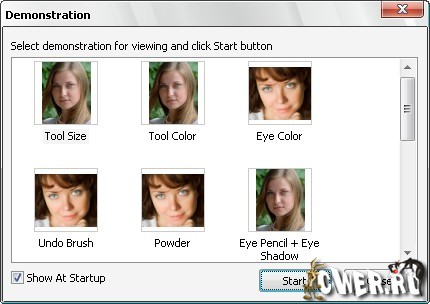 Программа для макияжа на фотографии поможет Вам сделать это без затрат на косметику и стилиста. Подбор макияжа с ее помощью позволит избежать ошибок при выборе собственного стиля. Те, кто считают, что правильно нанести макияж можно только в фотошопе, могут использовать нашу программу как плагин. Программа поможет накрасить губы; нанести румяна, тени и пудру; подвести глаза и изменить их цвет. Нанести макияж Вы можете следующими инструментами из виртуальной косметички: Губная помада, Пудра, Румяна, Цвет глаз, Тени, Подводка. В программу включены анимированные примеры обработки фотографий: изменение цвета глаз; запудривание излишнего блеска на коже; макияж глаз; макияж губ и скул.