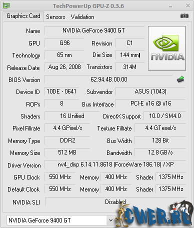 Вышла новая версия программы для вывода информации о графическом адаптере. GPU-Z поддерживает и карты NVIDIA, и ATI. Она поможет определить, какая у вас модель видеокарты, узнать интерфейс подключения, расскажет о том, какой используется графический процессор (версия BIOS, номер ревизии чипа, частота в 2D, 3D-режимах и при разгоне, сведения о поддержке DirectX).