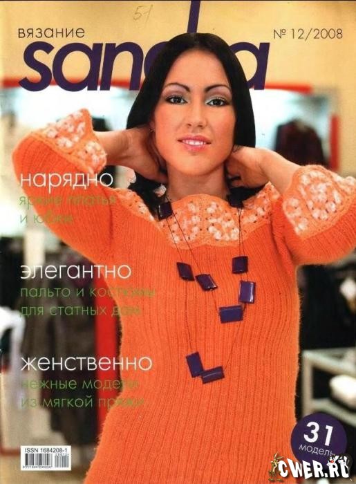 Журнал по вязанию спицами и крючком Sandra предлагает 29 моделей современного женского трикотажа для осени: белоснежные кардиганы из мохера, разнообразные кофточки с рельефными узорами и узорами из кос, топики, выполненные в технике филейного вязания, уютные жилеты для прохладных дней, классические женственные платья.