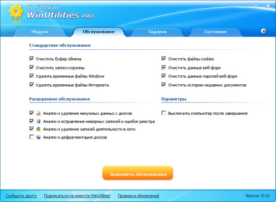 WinUtilities содержит пакет утилит для настройки и оптимизации Вашей операционной системы. Программа позволяет находить и удалять критические неисправности, неправильные ссылки и ключи в реестре, поможет правильно удалить приложения и программы, а также очистит историю интернета, cookies и многое другое. Также в программе есть возможность настроить автозапуск программ и изменять скрытые опции ОС.
