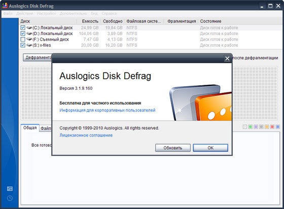Auslogics Disk Defrag - это компактный и быстрый дефрагментатор, работающий как с FAT 16/32, так и с NTFS файловыми системами. Программа использует ряд алгоритмов, которые позволяют оптимизировать и упорядочить файлы Вашего жесткого диска, дефрагментировать файловую структуру и ускорить работу приложений и Windows.